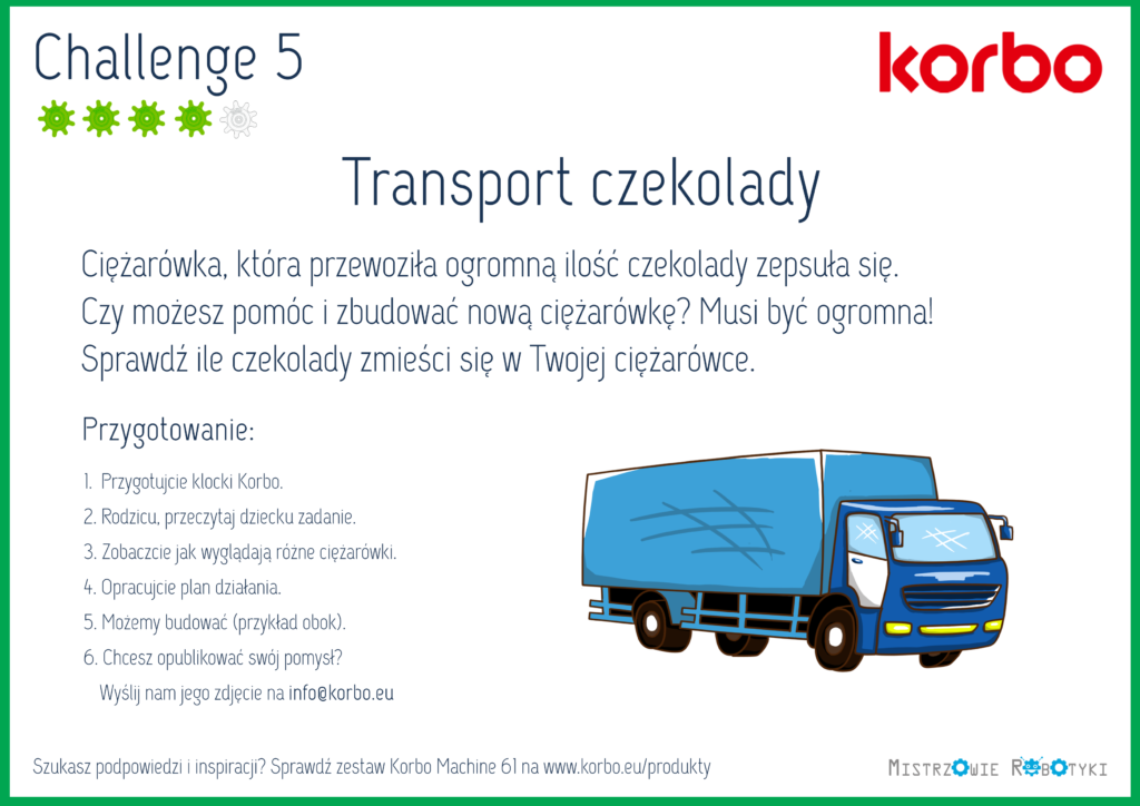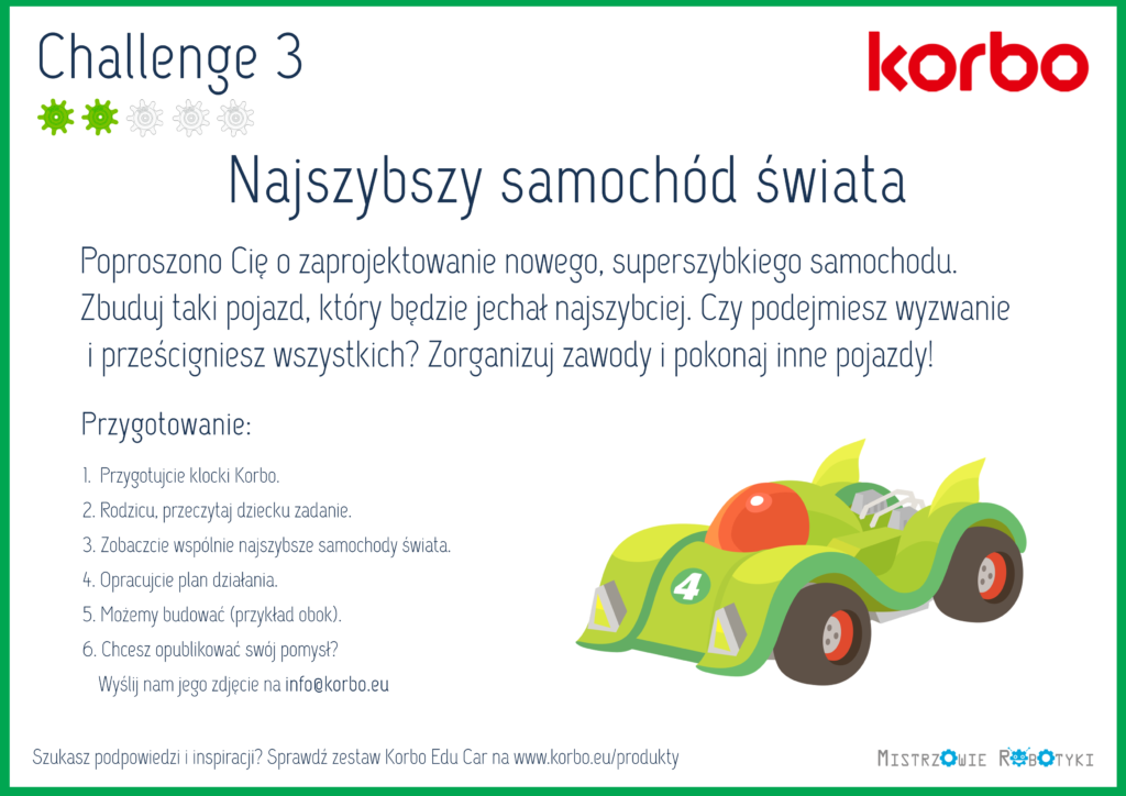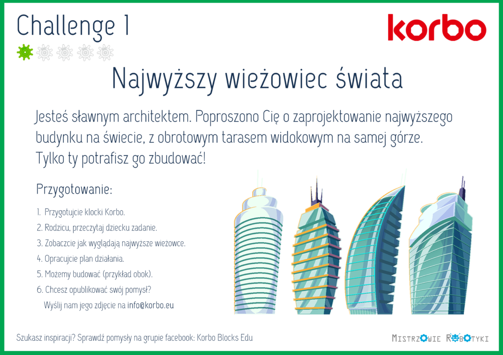 Strona w budowie Wyzwanie 1: Najwyższy wieżowiec świata Wyzwanie 2: Elektrownia wiatrowa Wyzwanie 3: Najszybszy samochód świata Wyzwanie 4: Szlaban parkingowy Wyzwanie 5: Ciężarówka Wyzwanie 6: Na placu zabaw Wyzwanie 7: Huśtawka Wyzwanie 8: Waga Wyzwanie 9: Zamek dla księżniczki i rycerza Wyzwanie 10: Kosmiczna przygoda